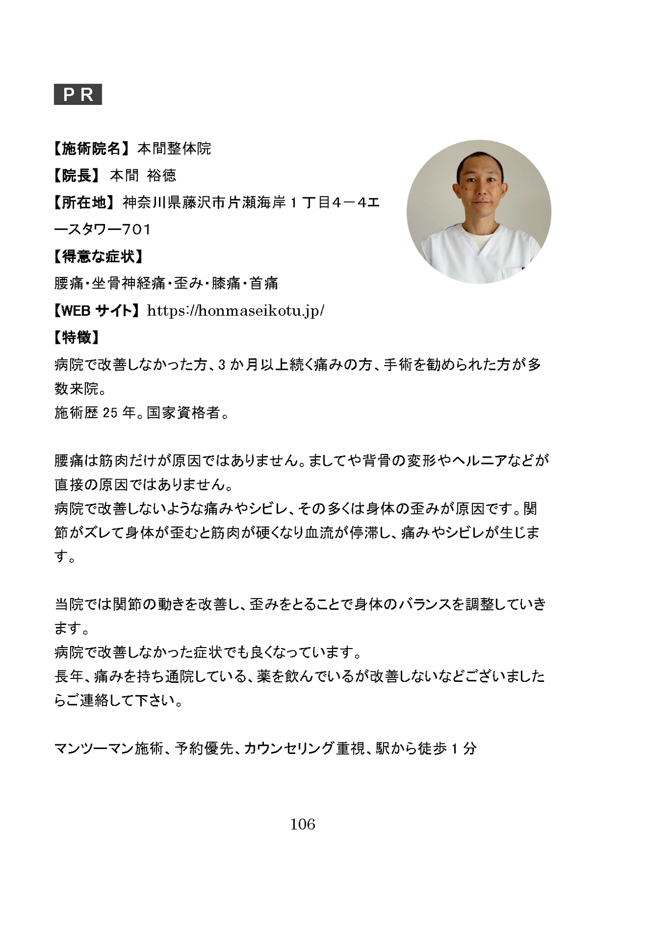 少し無理をしても、本間整体院が近くにあるので安心です。