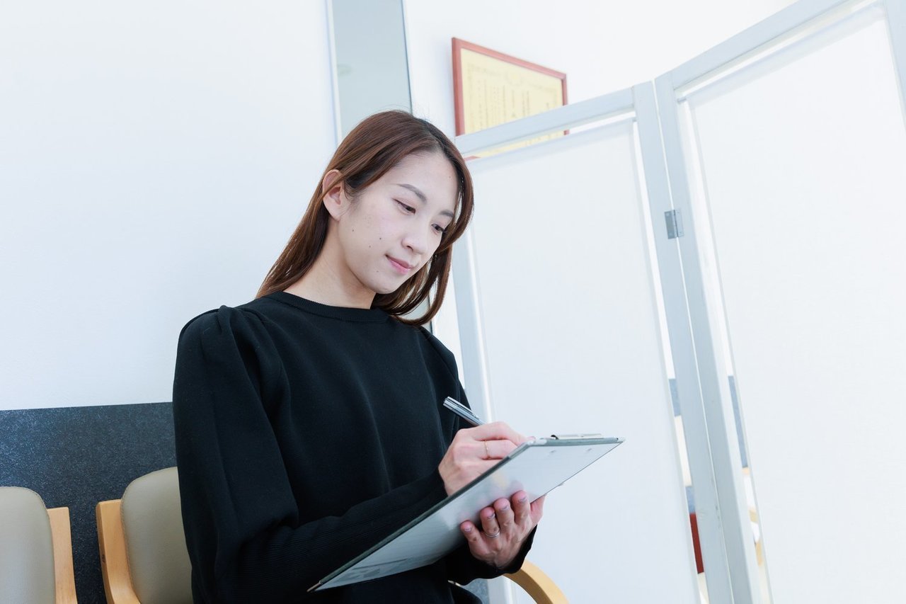 受付で問診票をお渡ししますので、症状やお悩みについてご記入ください。